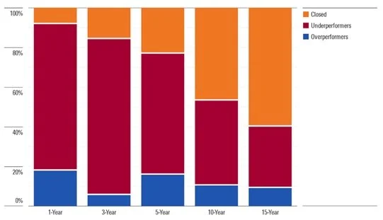 In fact, 60% of thematic funds launched in the last 15 years have shut down, and only 9% have both survived and outperformed a global equity benchmark.