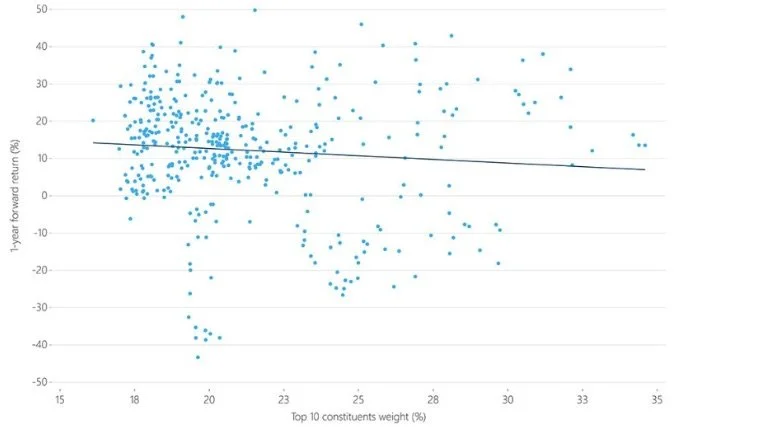 High concentration has historically said little about future market returns or risk, with periods of strong leadership followed by a wide range of outcomes driven more by fundamentals than index structure.