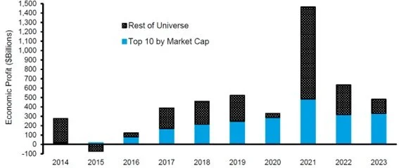 CHART 6: Economic profit of top 10 by market cap and of rest of universe (USA)